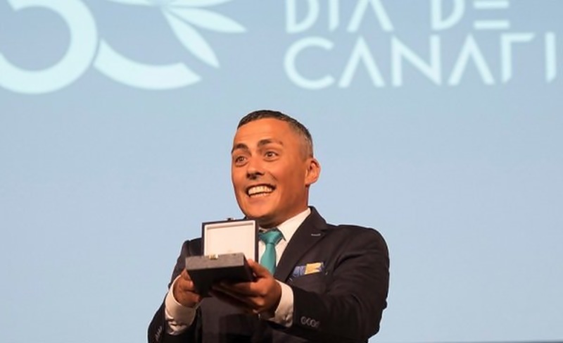 Miguel Páez, en representación de la plataforma, recogió la insignia en el acto institucional del Día de Canarias celebrado en Gran Canaria