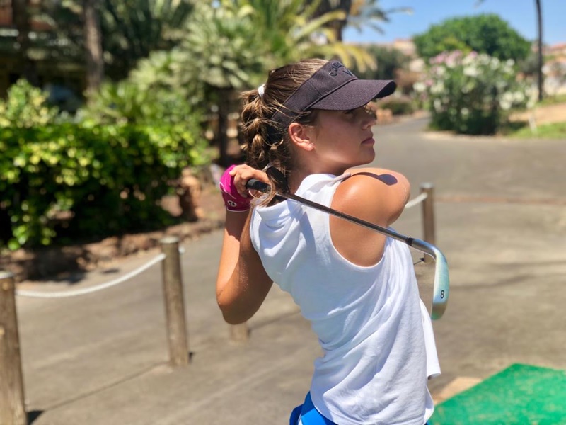 Aitana Ramos comenzó la práctica del golf en Lanzarote Golf, destacando rápidamente por sus facultades para este deporte en el que pasó en apenas un año de hándicap 48 a 23. La joven lanzaroteña cuenta con un buen ritmo de juego y mantiene una gran progresión.