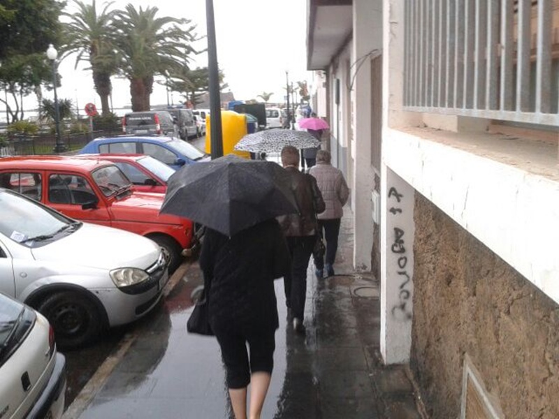 La lluvia llegaba este viernes por la noche a todos los rincones de la isla. Aunque por ahora lo ha hecho de manera débil, la Agencia Estatal de Meteorología (AEMET) prevé que llueva más por la tarde y por la noche. También empeorará el estado de la mar, pues a las 12.00 horas comienza la alerta amarilla por oleaje y fuertes vientos de las 15.00 horas. En cuanto al viento, se esperan rachas durante estos dos días de entre 70 y 80 kilómetros por hora.