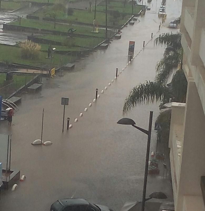 La lluvia ha descargado este domingo con fuerza desde Tías hasta Costa Teguise, pasando por Arrecife, donde ha dejado a sus paso algunas inundaciones en sótanos y garajes, y problemas en las calles Portugal y Triana, así como Gómez Ulla, donde se han desbordado las alcantarillas.