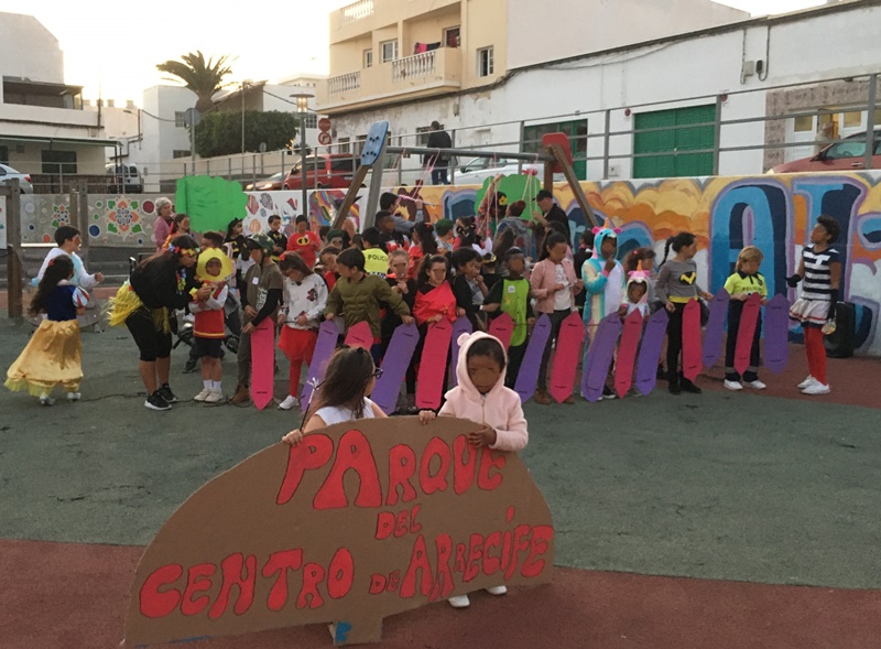 “Pero en Argana, que en este Carnaval hemos sido aprendices de brujas y brujos buenos... hemos convertido a nuestro parque, durante un ratito, en un parque normal... con vallas, árboles y columpios. En Argana somos aprendices y hacemos magia, aunque todavía los casi 2.000 niños y niñas no hayamos podido columpiarnos. Todavía”.