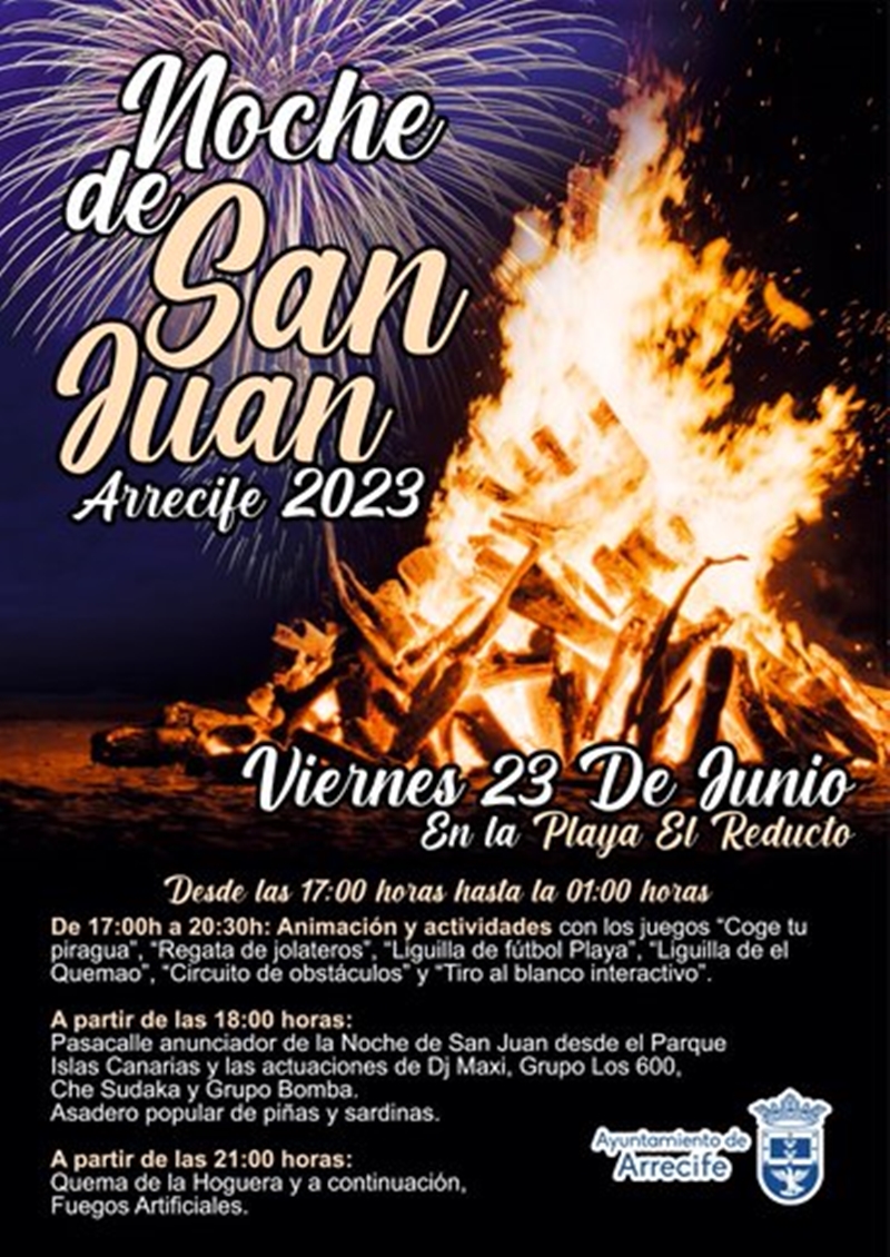 El Ayuntamiento de Arrecife, que preside la alcaldesa Astrid Pérez, organiza a través del Área de Festejos, que dirige el primer teniente de alcalde, Echedey Eugenio, la 'Noche de San Juan' con un programa que dinamizará el entorno de la playa del Reducto de la capital de Lanzarote para dar la bienvenida al verano.