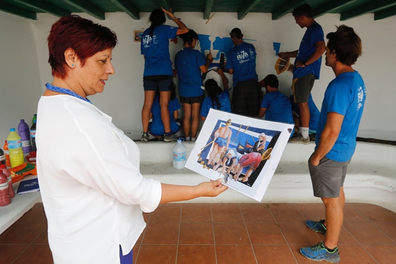 Los voluntarios de 'Ruta 7' y 'Junt@s Somos Biosfera' se hermanan para crear dos pinturas murales inspiradas en sendos trabajos del artista