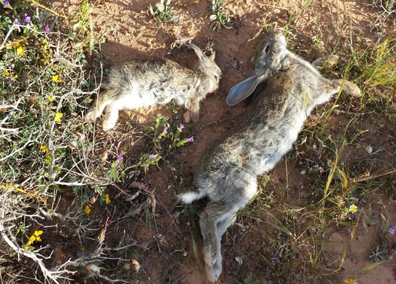 El citado virus, según explican, "se transmite por vía directa, a través del aire y algunos de los conejos muertos presentan además restos de sangre por las fosas nasales manchando el hocico del animal"