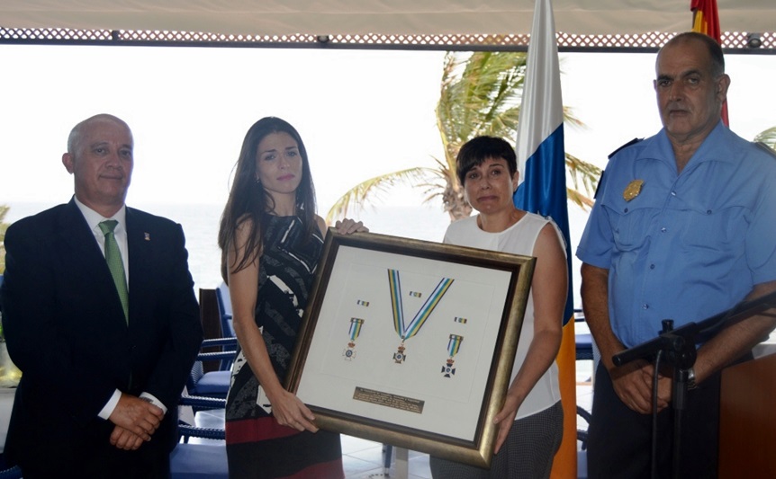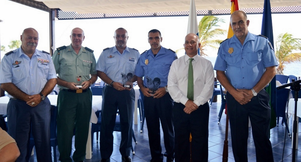Para concluir el acto, el oficial jefe accidental de la Policía Local de Tías, Baldomero Cañada y el alcalde hicieron entrega de diversos premios y reconocimientos a los agentes, entre los que destacaron los distintivos oficiales de la permanencia en el servicio activo de las Policías Locales de Canarias, a título póstumo, y por haber sido solicitada antes de su fallecimiento, al agente José Luis García Molina y que fueron recogidos por su viuda, Mercedes Hernández y una de sus hijas