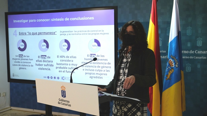 Todos estos datos los presentaba la directora del Instituto Canario de Igualdad (ICI), Kika Fumero, que daba a conocer este miércoles el diagnóstico sobre las percepciones y actitudes de la juventud canaria ante la violencia de género generado a partir del análisis de las respuestas de 1.179 chicas y 1.209 chicos de 14 a 29 años, y las opiniones vertidas sobre violencia de género por 86 participantes en 8 grupos de debate y 26 entrevistas.