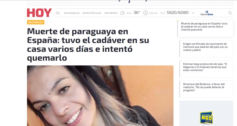 El asesinato de la joven paraguaya Romina Celeste Núñez Rodríguez, supuestamente, a manos de su marido Raúl Díaz Cachón, no ha pasado desapercibida para los medios de comunicación de su país de origen, que se hacen eco estos días de las informaciones que se han ido publicando en la prensa local y nacional.