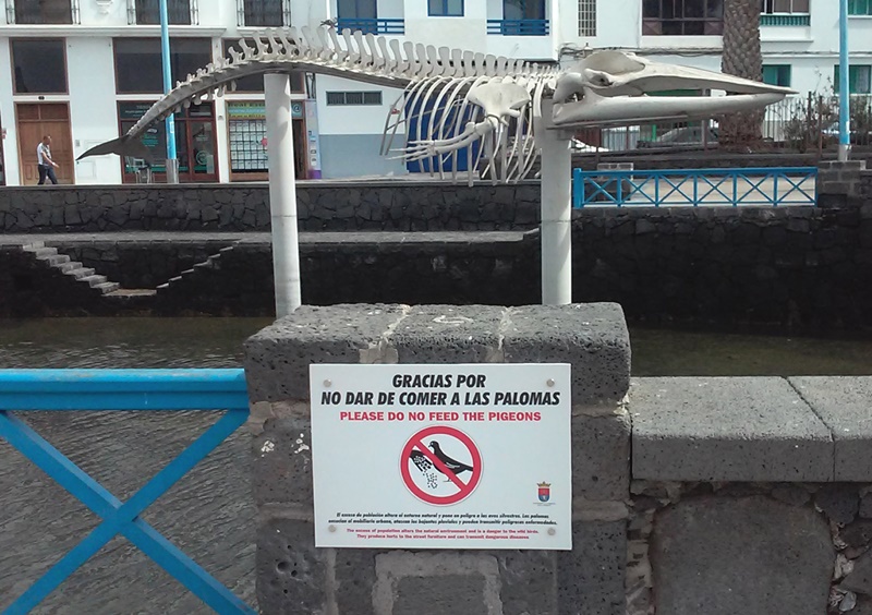 El Consistorio activa una campaña de concienciación ciudadana para no alimentar a las palomas comunes y tórtolas que deterioran con sus excrementos la osamenta de Rorcual Tropical