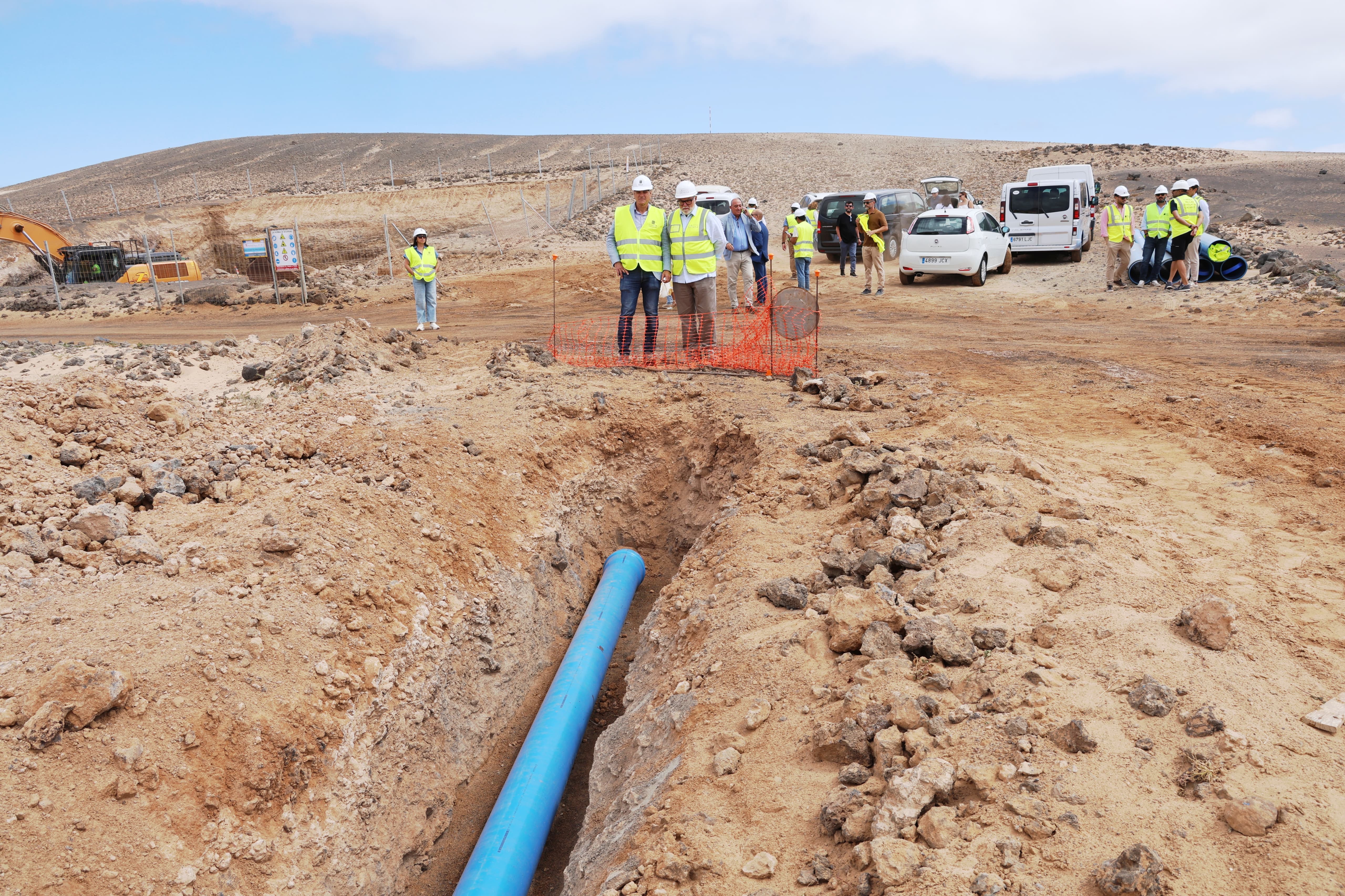 El consejero de Aguas del Cabildo de Lanzarote, Domingo Cejas, visitó hoy, junto a la secretaria de Estado de Agricultura, Begoña García, y los responsables de la empresa pública Seiasa, encargada de la ejecución del proyecto, las obras que se realizan para abastecer de agua desalada con destino al sector agrícola a los municipios de Tinajo y Teguise.