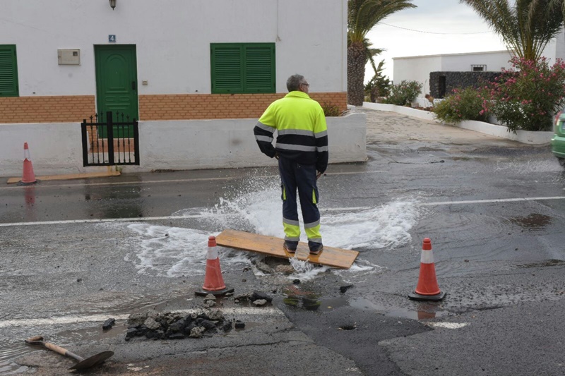 La rotura de una tubería en Tías provoca un pequeño géiser