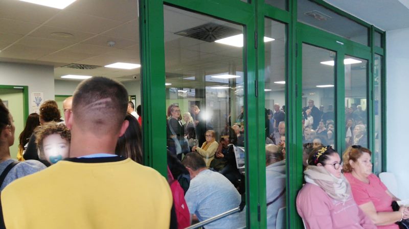 Una sala desbordada por la cantidad de personas que se concentran en las primeras horas del día, a partir de las 8 de la mañana. “Usted tiene el número 110, siéntese y espere a que vea en el luminoso su número”, le dice un eficiente sanitario a un señor mayor que mira asombrado para un lado y para otro incrédulo al ver tanta gente junta.
