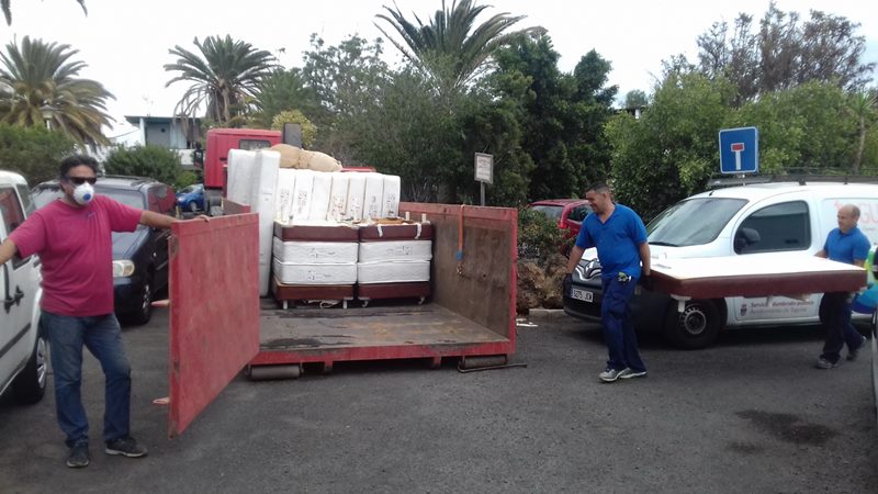 La carga, somieres y colchones, ha sido donada por Apartamentos Barcarola Club a fin de que puedan utilizarse para comodidad y cobijo de quienes no tienen un techo en el resguardarse en pleno Estado de Alarma. Este establecimiento cerrará sus puertas de manera temporal y son los propios empleados quienes han colaborado en el traslado del material donado.