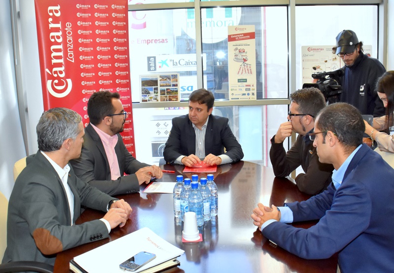 El consejero de Turismo del Cabildo de Lanzarote y presidente del Consejo de Administración de la Sociedad de Promoción Exterior de Lanzarote, Echedey Eugenio, el consejero delegado de este ente, Héctor Fernández, y el presidente de la Cámara de Comercio, Industria y Navegación de Lanzarote, José Torres, firmaron este jueves un convenio con el objetivo de redefinir el marco de colaboración existente entre ambos organismos.