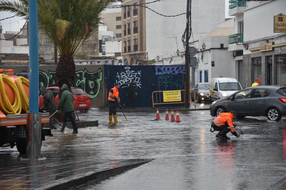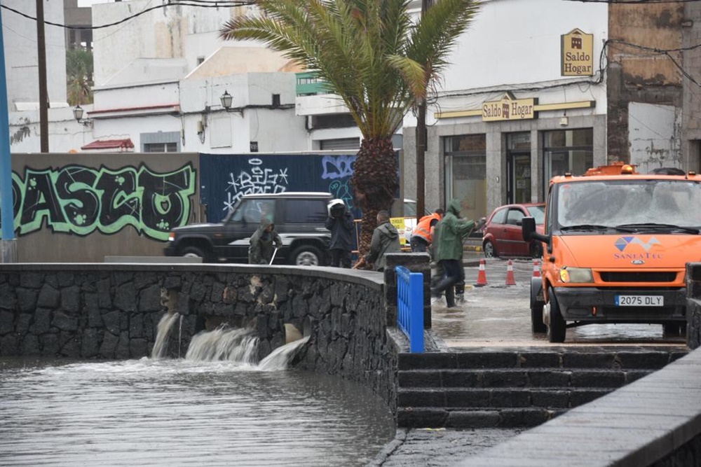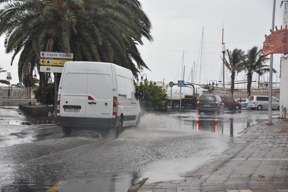 La tormenta ya está llegando en su mayor esplendor a la capital. La borrasca que entraba por el sur de la isla dejó fuertes lluvias en Yaiza y Tías, y está llegando ahora a Arrecife, donde la preocupación es mayor.