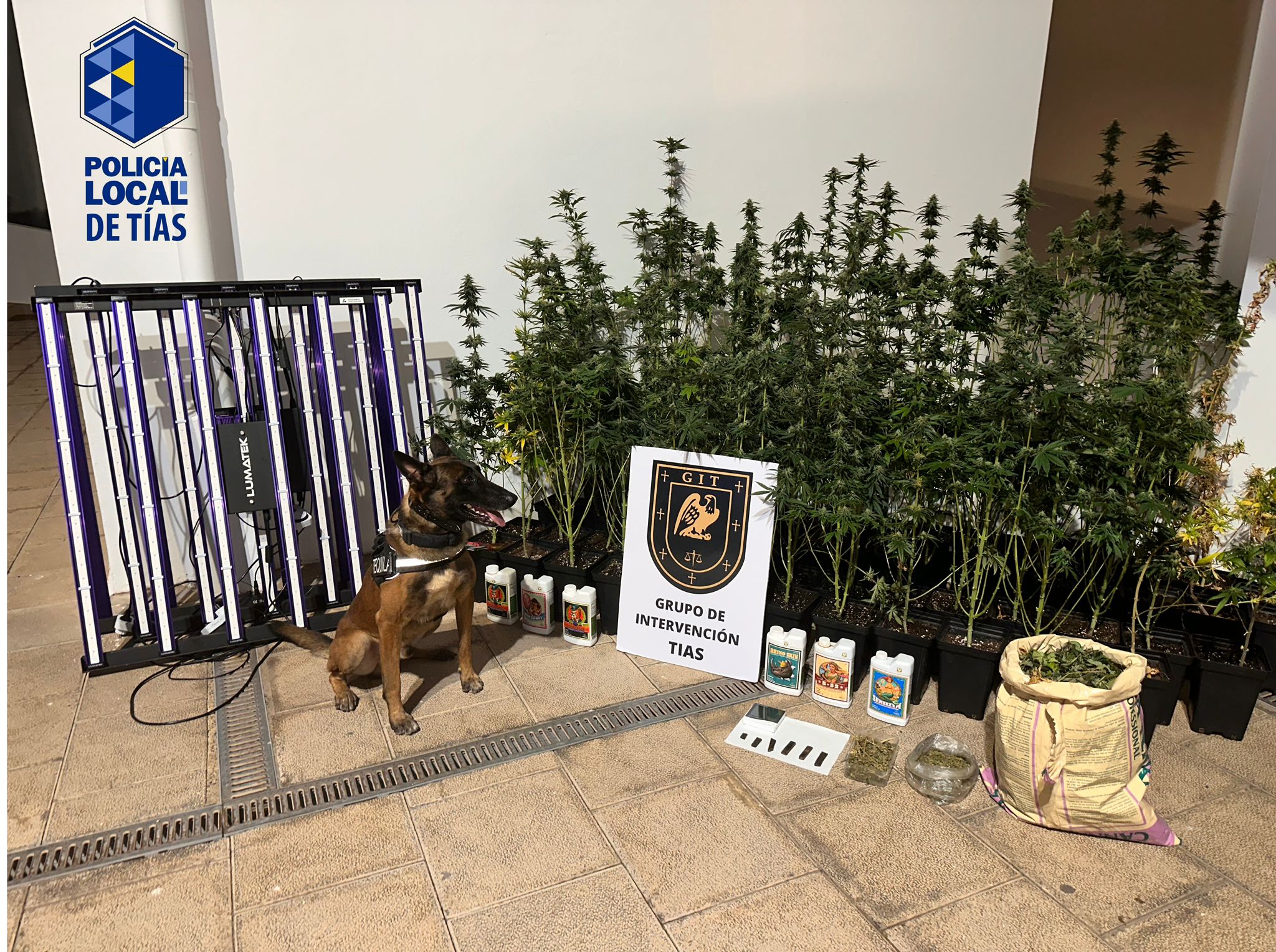 La Jefatura de la Policía Local de Tías informa de esta operación, denominada Operación Halloween al ejecutarse el pasado día 31 de octubre, indicando que se pudieron incautar alrededor de 70 plantas de cannabis sativa con un peso estimado de 15,35 kilogramos y varios envoltorios de hachís preparados para su venta.