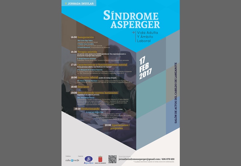 El Cabildo de Lanzarote, a través de la Consejería de Bienestar Social, gestionada por Lucía Olga Tejera, organiza, junto a la Asociación Asperger de Canarias (ASPERCAN), la V Jornada Insular sobre el síndrome de Asperger.