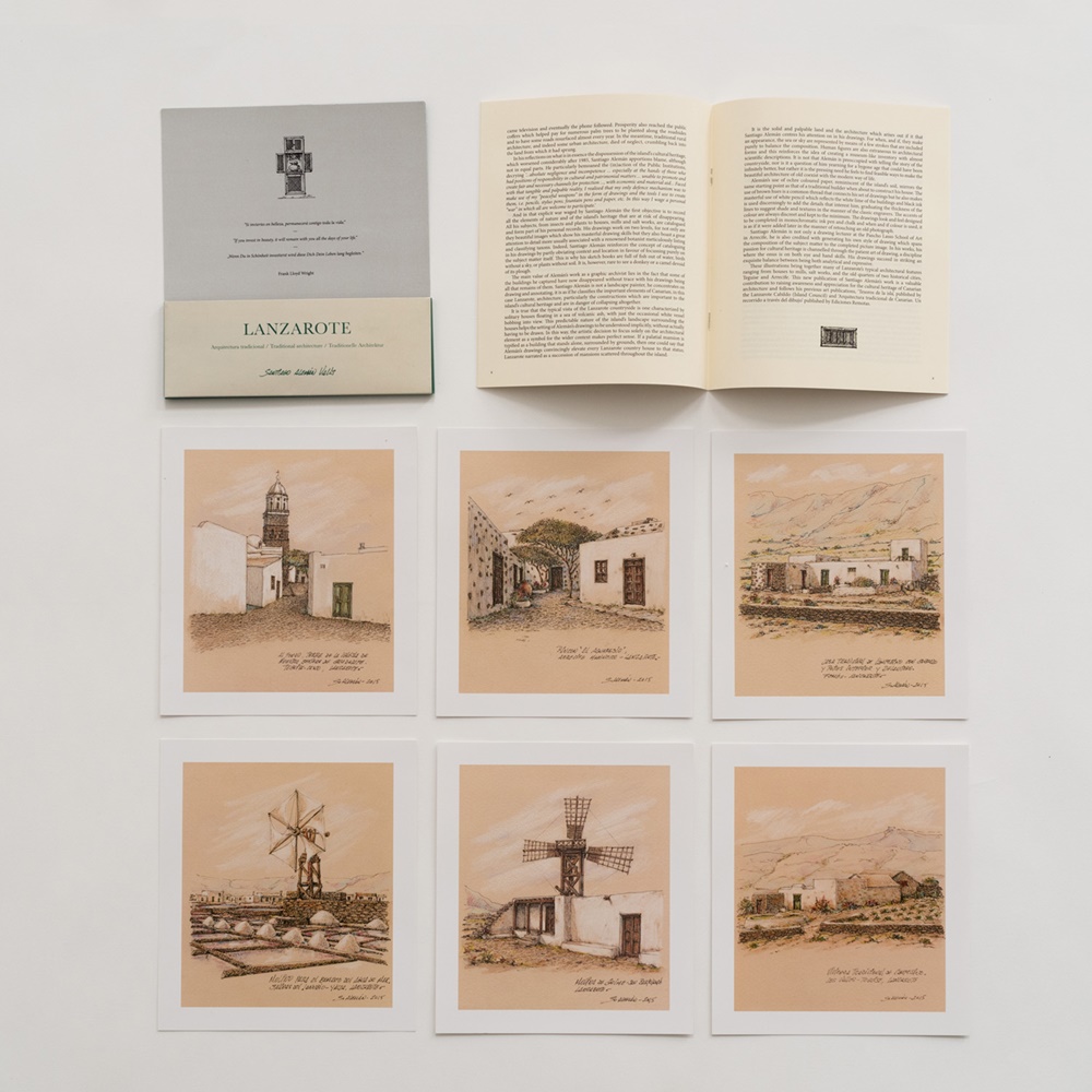 El ilustrador, pintor y catedrático Santiago Alemán ha vuelto a escribir una página más en su lucha contra el olvido con 'Lanzarote, arquitectura tradicional', una lujosa publicación de Ediciones Remotas que reúne seis láminas a color que reproducen construcciones de la isla acompañadas por un texto del arquitecto Luis Díaz Feria, traducido además al inglés y al alemán.