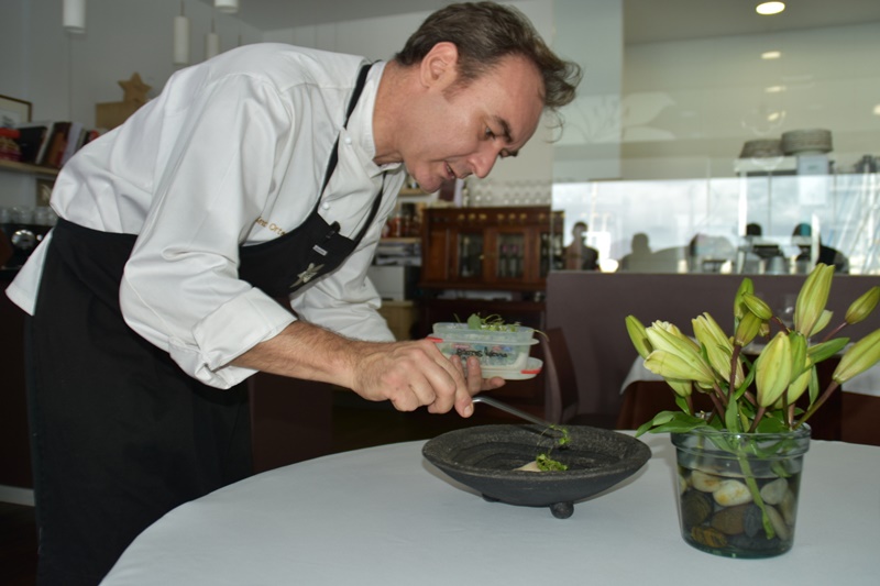 Durante el showcooking celebrado hoy en el restaurante Lilium, Germán Blanco se atrevió con un ceviche de cherne, ajís y brotes de cilantro, con caviar de plátano. Este reputado cocinero acogerá el fin de semana al tinerfeño Josué Mendoza.
