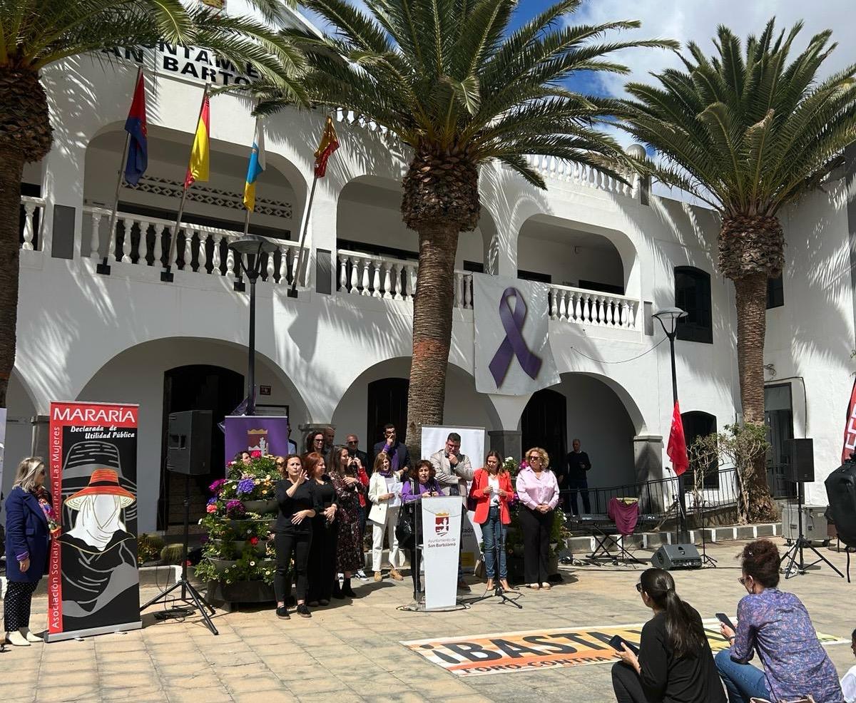 Por otra parte, el centro urbano de Tías vivió esta mañana un ambiente de celebración con motivo del Día Internacional de la Mujer, que comenzó en el municipio desde el día 4 de marzo y finalizará el día 13 en el Teatro Municipal con la gran gala de reconocimiento a siete `Mujeres con Huella´ junto al espectáculo musical Voces de Mujer, dirigido por Eva Aroca.