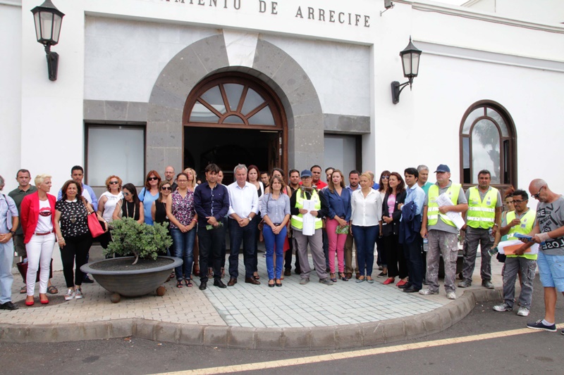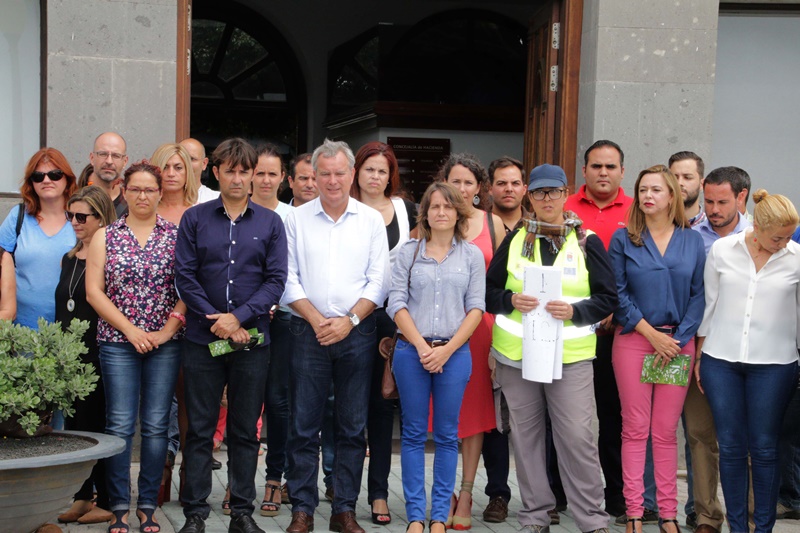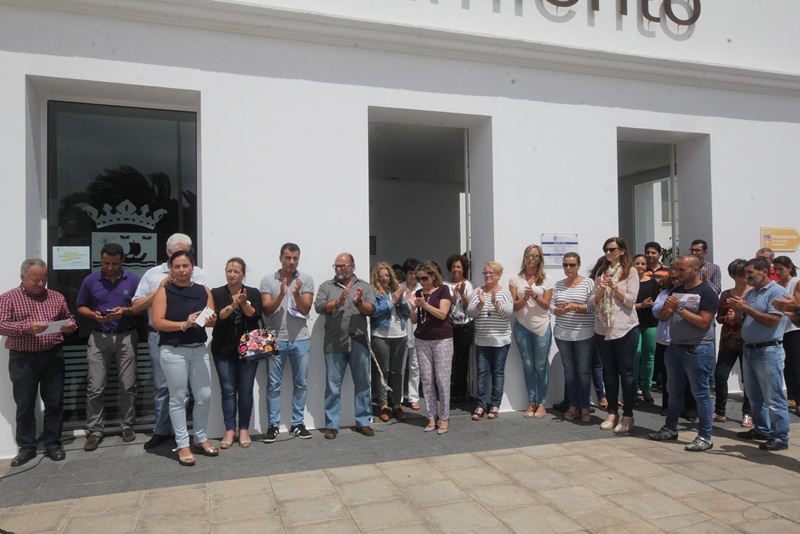 Trabajadores y responsables públicos del Ayuntamiento de Yaiza, entre ellos, la alcaldesa, Gladys Acuña, guardaron también un minuto de silencio en memoria de las víctimas del trágico suceso de Orlando.