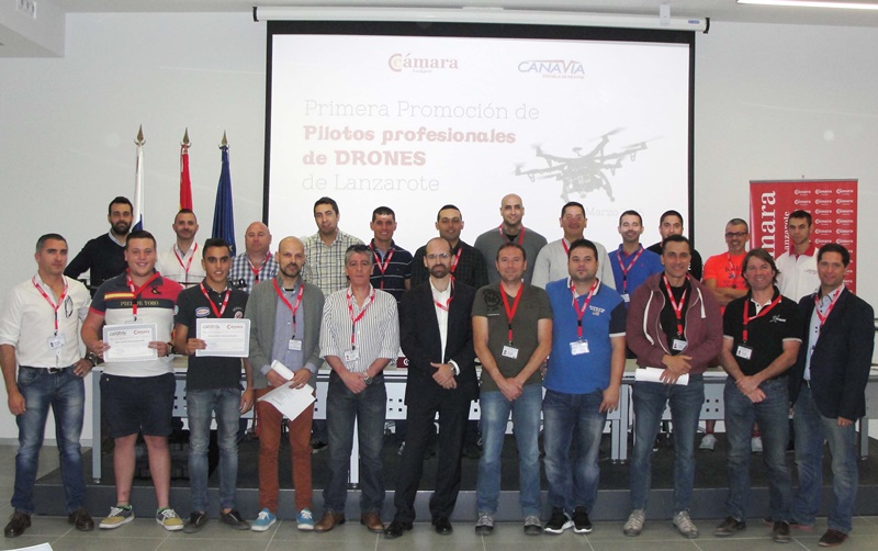 Los veinte primeros pilotos profesionales de drones de Lanzarote han recibido sus orlas, títulos y carnés. La mayoría son profesionales relacionados con la seguridad y las emergencias o empresas vinculadas a actividades creativas. A partir de este curso surgirán nuevas actividades y empresas, de hecho en España ya se registran diariamente tres nuevas empresas vinculadas a los drones.