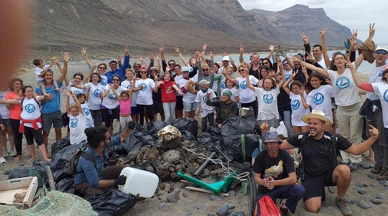La pusieron en marcha un grupo de personas que estaba cansada de ver las playas de la isla sucias. “Lanzarote Limpia, básicamente nació por motivo del estado lamentable de nuestras playas. Es una asociación fundada por dos amigos Tobias Heeb y Steff Cerf. Con el objetivo de obtener una mayor sensibilización y por consiguiente una modificación y erradicación de hábitos lesivos para con nuestro frágil entorno. Todo ello, con la colaboración de los voluntarios que se apunta cada domingo para limpiar y concienciar a nuestra isla”, explica Aduén Morales, responsable actual de la asociación. “En cada actividad que realizamos hay una media de cuarenta personas llegadas de todos los rincones de la isla y de todas las nacionalidades. La acción más multitudinaria tuvo lugar el año pasado debajo del risco, y en ella participaron más de ciento cincuenta voluntarios. Esa actividad fue en colaboración con Líneas Romero, que nos desplazaron de forma gratuita desde el muelle de Órzola a la playa de debajo del risco. No sólo eso, también tuvieron el detalle de invitar a comer y a beber a todos los voluntarios. Sinceramente, ha sido una de las actividades más bonitas que hemos realizado; por el número de voluntarios y por la ubicación”.