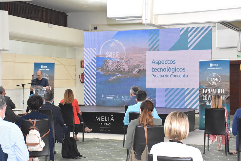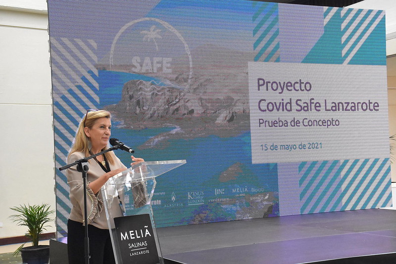 La presidenta del Cabildo de Lanzarote, María Dolores, Corujo, presentó esta mañana un proyecto piloto pionero e innovador que situará a la Isla como "primer destino turístico seguro del todo el mundo".