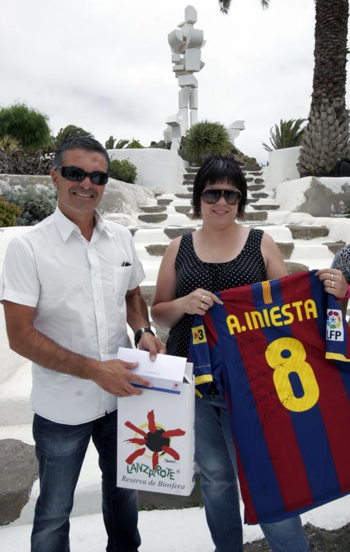 Maribel Iniesta, hermana del campeón del mundo con la selección española de Fútbol Andrés Iniesta, está de visita en Lanzarote, y durante la misma, obsequió una camiseta autografiada por el futbolista, en agradecimiento al apoyo recibido por parte de los lanzaroteños durante el Mundial.