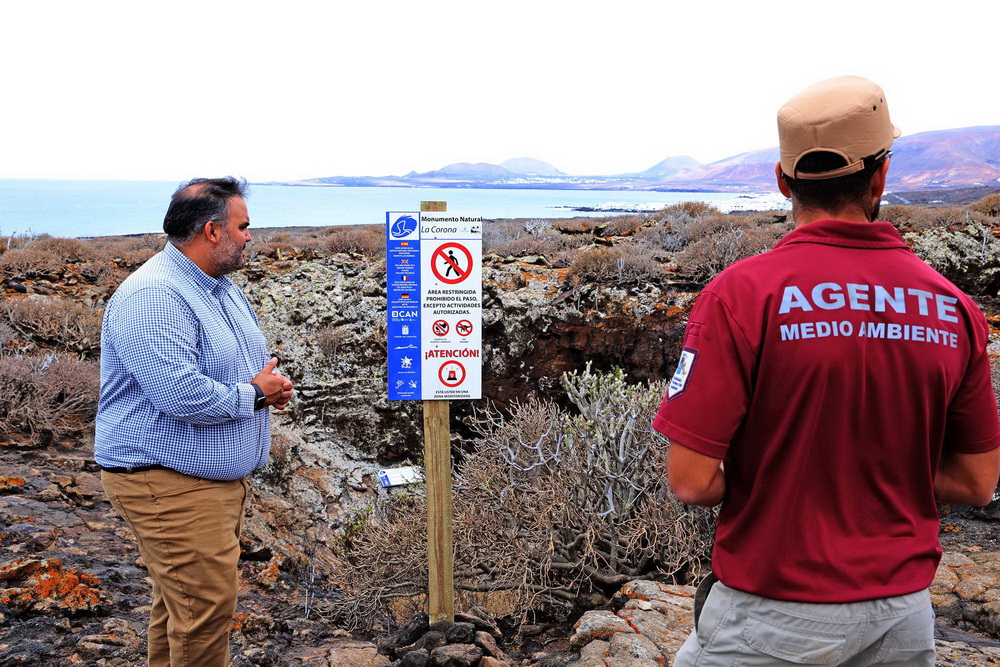 El Cabildo de Lanzarote, a través del Área de Medio Ambiente que dirige el consejero Samuel Martín, ha instalado una nueva señalética informativa y de restricción de acceso en el Monumento Natural de La Corona. Esta actuación tiene como objetivo reforzar la protección del entorno, mejorar la información a los visitantes y controlar los accesos a zonas de especial sensibilidad ambiental, como la Cueva de los Siete Lagos.