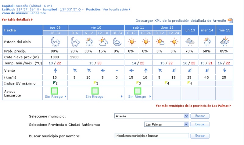 También en el sur de la isla, donde se preveía que comenzara a llover primero, ha comenzado a caer un débil chubasco a esta hora, al igual que en la capital lanzaroteña, aunque en ocasiones ha habido rachas fuertes de lluvia. Las precipitaciones podrían durar hasta este viernes sobre las 12.00 horas.