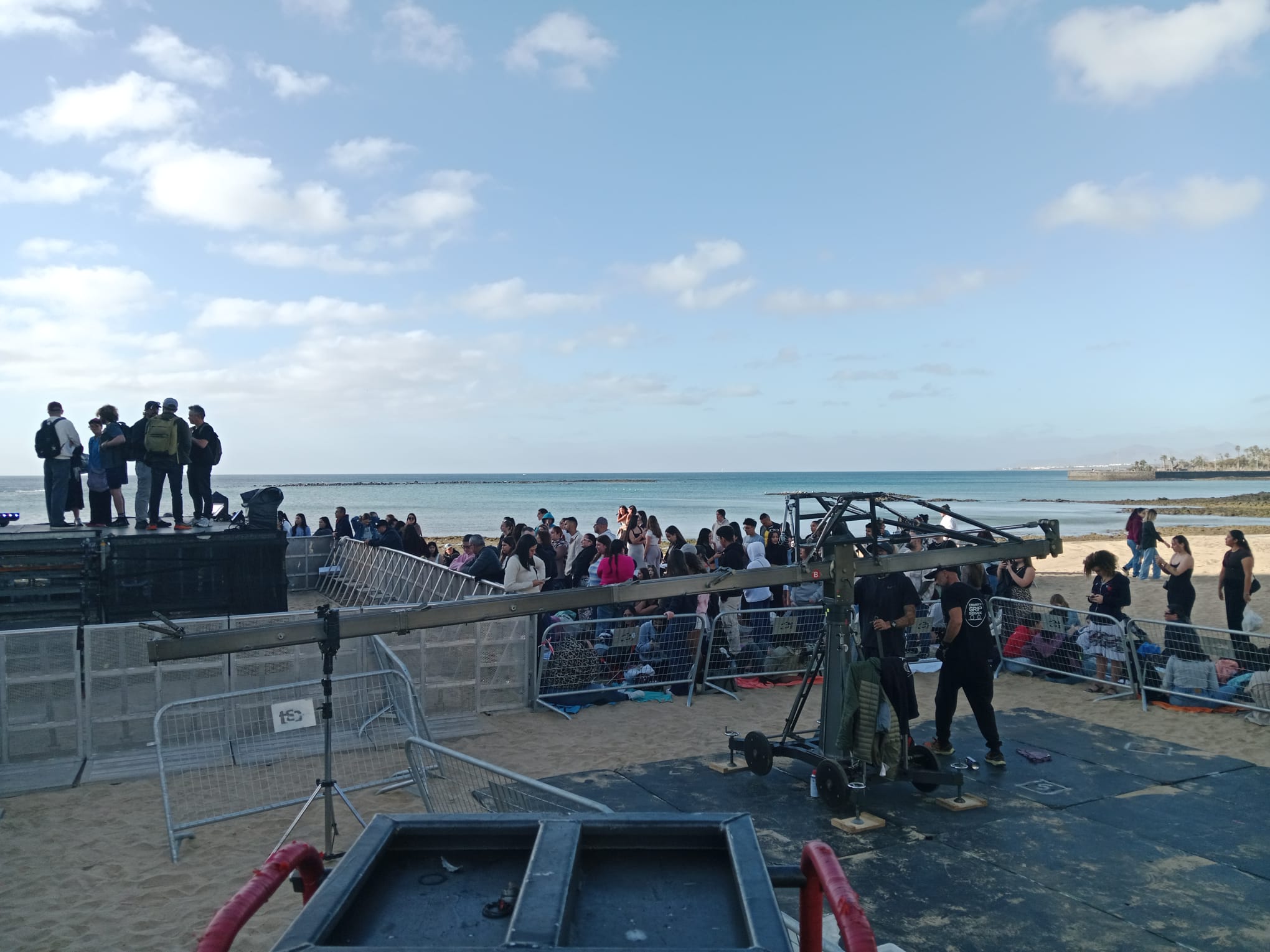 El comenzará a partir de las 14.00 horas de este lunes 13 de enero en la playa de El Reducto y consistirá en la grabación de un gran concierto en el que, además de los actores de la producción colombiana, estarán sobre el escenario estrellas como el español Omar Montes y el puertorriqueño DJ Nelson. También actuará Maare, la nueva apuesta puertorriqueña de DJ Nelson, además de parte del elenco de DN7 Music compuesto por Juanfran, Carlos Heredia, Angelyah, Alda, Bry M y Nesty D.
