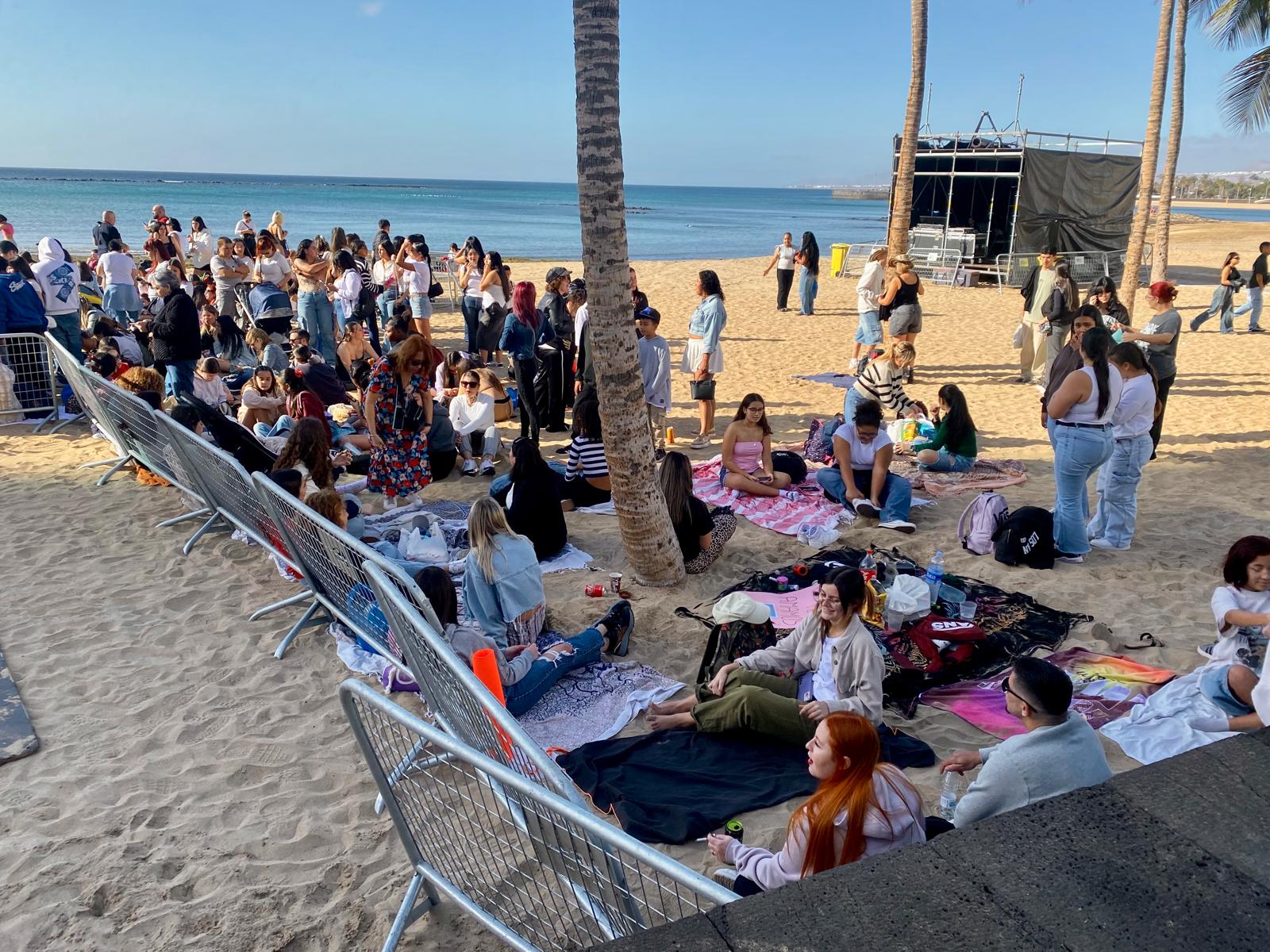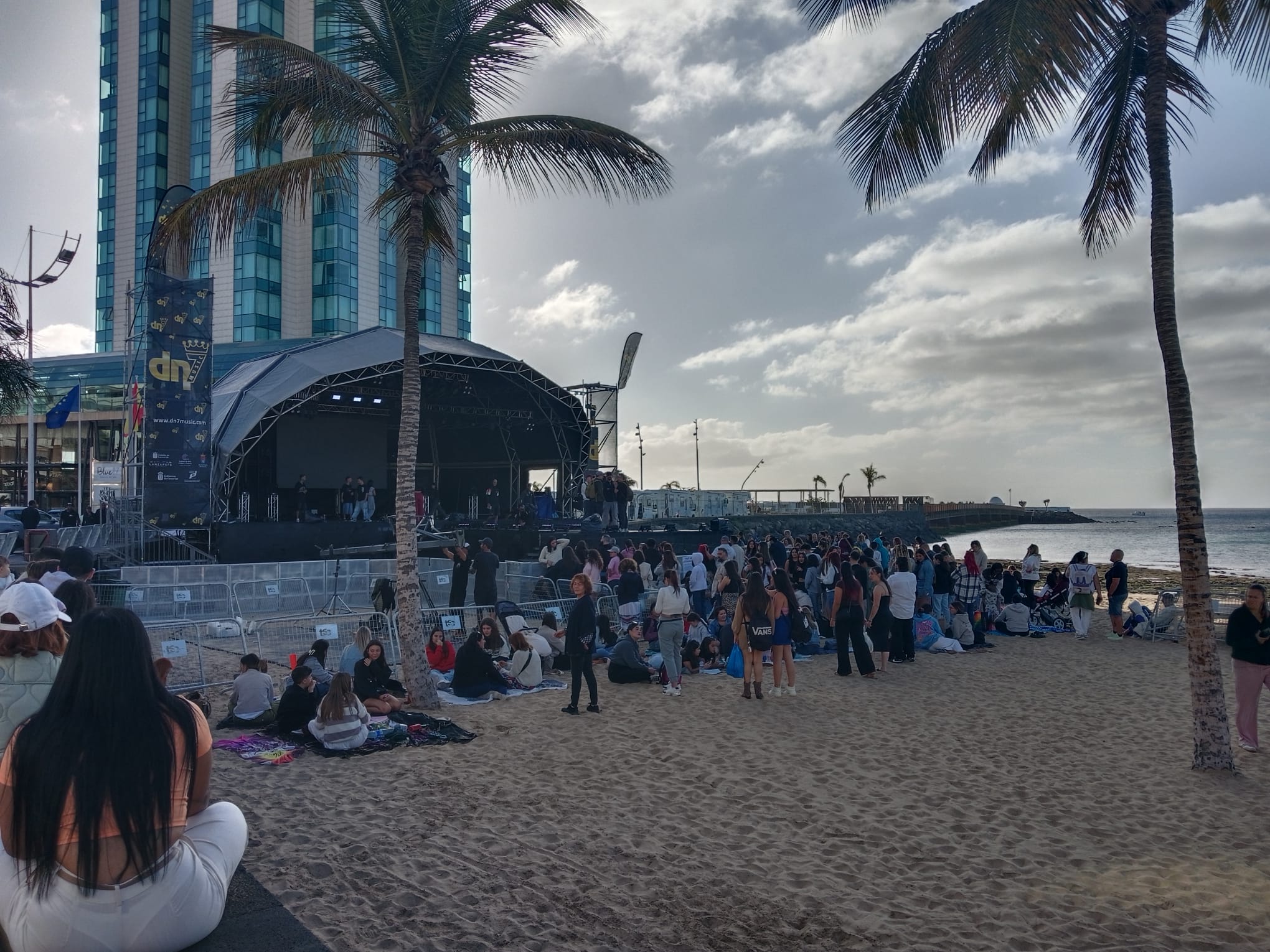 Desde primera hora de la mañana de este lunes 13 de enero, numerosos jóvenes ya ocupaban los primeros puestos ante el escenario del reducto para participar en el rodaje de un capítulo de ‘La Reina del Flow’.