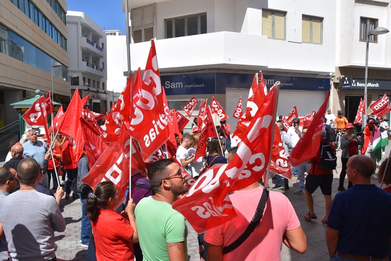 Un nutrido grupo de lanzaroteños participaba este miércoles 1 de mayo en las manifestaciones organizadas por los sindicatos, especialmente CCOO como se ve en las imágenes, con motivo de la celebración del día del Trabajo.