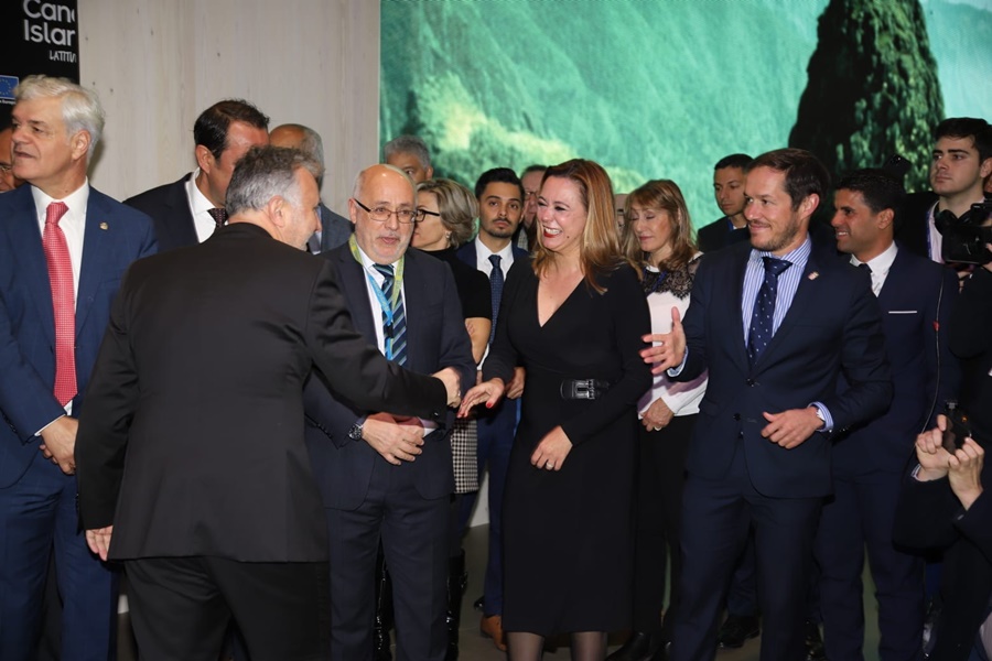 La jornada de este miércoles en Fitur 2020 se iniciaba con la visita al stand lanzaroteño del presidente del Gobierno de Canarias, Ángel Víctor Torres, acompañado de la consejera de Turismo, Industria y Comercio del Ejecutivo canario, Yaiza Castilla, que fueron recibidos por la presidenta del Cabildo, Mª Dolores Corujo, y el consejero de Promoción Turística, Ángel Vázquez. El acto de recepción también contó con la presencia del consejero delegado de los CACTs, Benjamín Perdomo; el alcalde de Tías, José Juan Cruz, y los concejales de Turismo de Tías, el consejero de Geoparque Hugo Delgado, Mame Fernández, de Yaiza, Ángel Domínguez, y de Teguise (Turismo Interior), Tony Callero, y la presidenta de la Federación Turística de Lanzarote, Susana Pérez, además de los integrantes del equipo de la Sociedad de Promoción Exterior de Lanzarote (SPEL-Turismo Lanzarote), encabezados por el consejero delegado de la Entidad, Héctor Fernández.