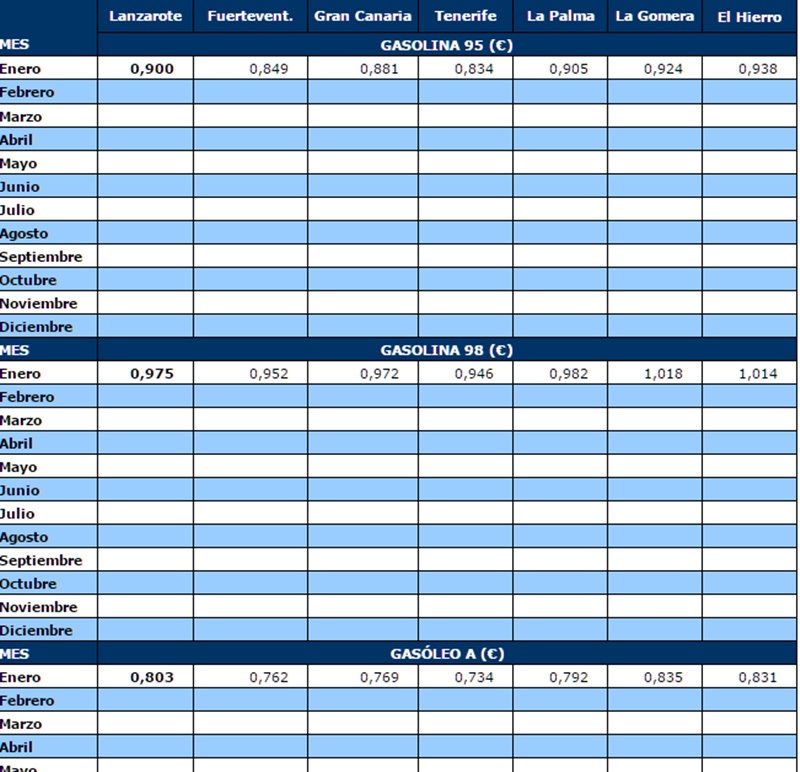 La diferencia es de hasta algo más de cinco céntimos en lo que respecta a la gasolina de 95 octanos, cuyo precio medio en enero en Lanzarote era de 0,9 euros el litros, mientras que en la isla majorera era de 0,849. También Gran Canaria y Tenerife pagaban menos por este tipo de gasolina. En el caso de la primera, la diferencia es de apenas dos céntimos (0,881 euros el litro), pero en el caso de la segunda llega a ser de siete (0,834 euros el litro). Por contra, La Palma (0,905) La Gomera (0,924) y El Hierro (0,938) registraron los precios más altos.