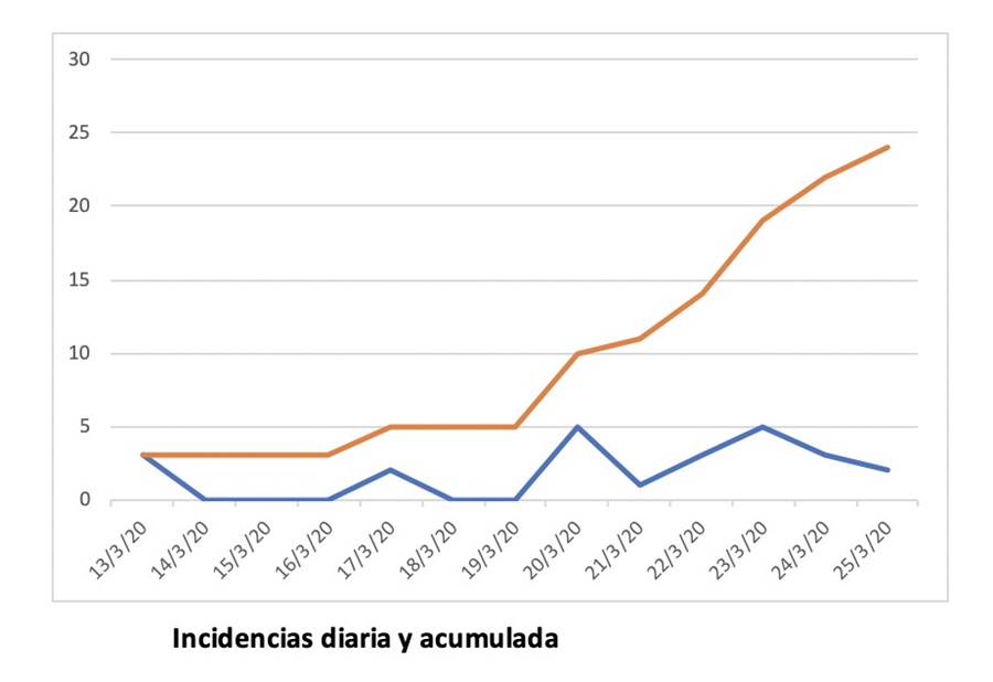 Tal y como se puede ver en las gráficas que adjuntamos en la información, en los últimos días ha habido un aumento importante de casos detectados. De hecho, en la segunda gráfica se puede comprobar que el número se ha duplicado en los últimos días. Pese a que Lanzarote no es la isla más afectada por el coronavirus, si es cierto que el día 20 había un total de 10 personas infectadas y hoy 27 de marzo alcanzamos los 24 contagiados, a la espera de conocer los datos de los segundos análisis de 12 test positivos de los 24 y 25.