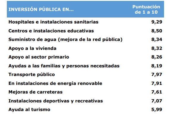 Además también se ha querido conocer cuáles serían las prioridades de los lanzaroteños para la inversión pública de la isla y el residente lo tiene claro. Lo que más urge es conseguir financiación para mejorar la sanidad, al igual que los centros de enseñanza o el tejido hídrico de la isla.