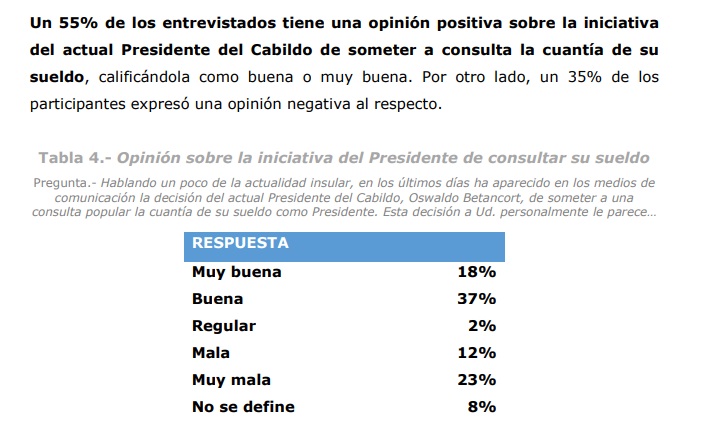 Tras la consulta telefónica y popular de Oswaldo Betancort para decretar el sueldo que tendría en el próximo mandato, Lanzarote, además de fijarlo, ha valorado muy positivamente esta iniciativa con tintes democráticos, por parte del nuevo presidente del Cabildo de Lanzarote.