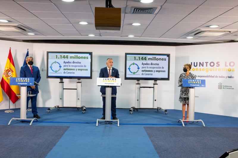 Como señaló el jefe del Ejecutivo, estos 1.144 millones de euros se suman a las ayudas que ha venido arbitrando el Gobierno canario, como los 95 millones de ayudas directas en 2020, los 84 millones de euros de 2021, otros 80 millones de euros para el IBI y el bono turístico o los aplazamientos fiscales. Ángel Víctor Torres explicó que con el Decreto-ley de hoy se perfeccionarán los procedimientos, dentro de la legalidad vigente, para que sean rápidos, ágiles, eficientes y eficaces "y que todos estos fondos lleguen a las empresas y autónomos en Canarias".