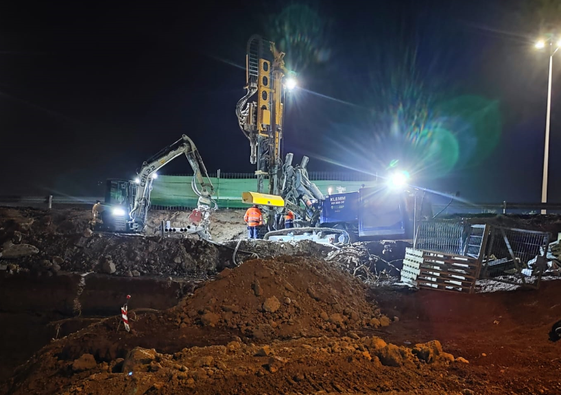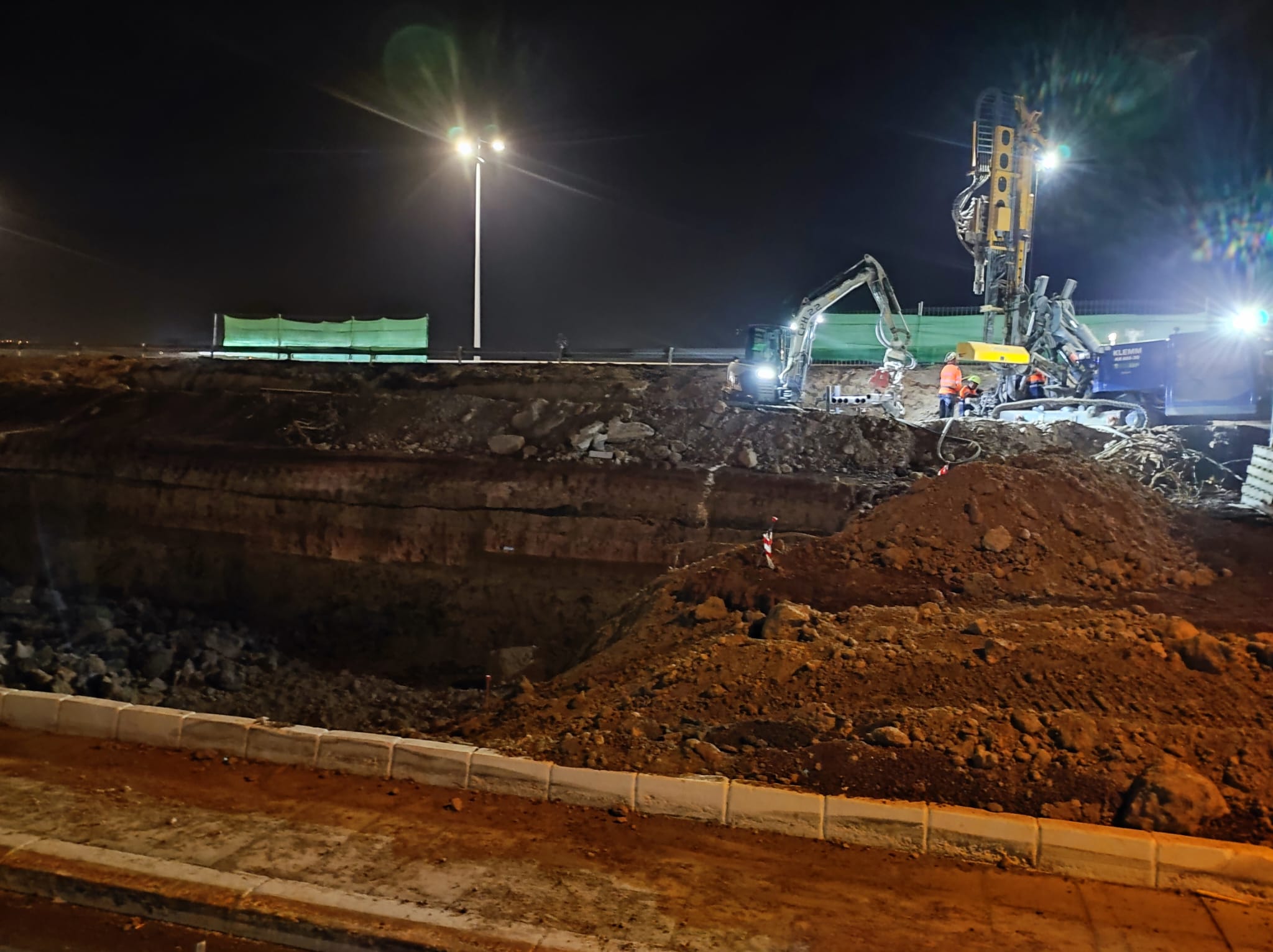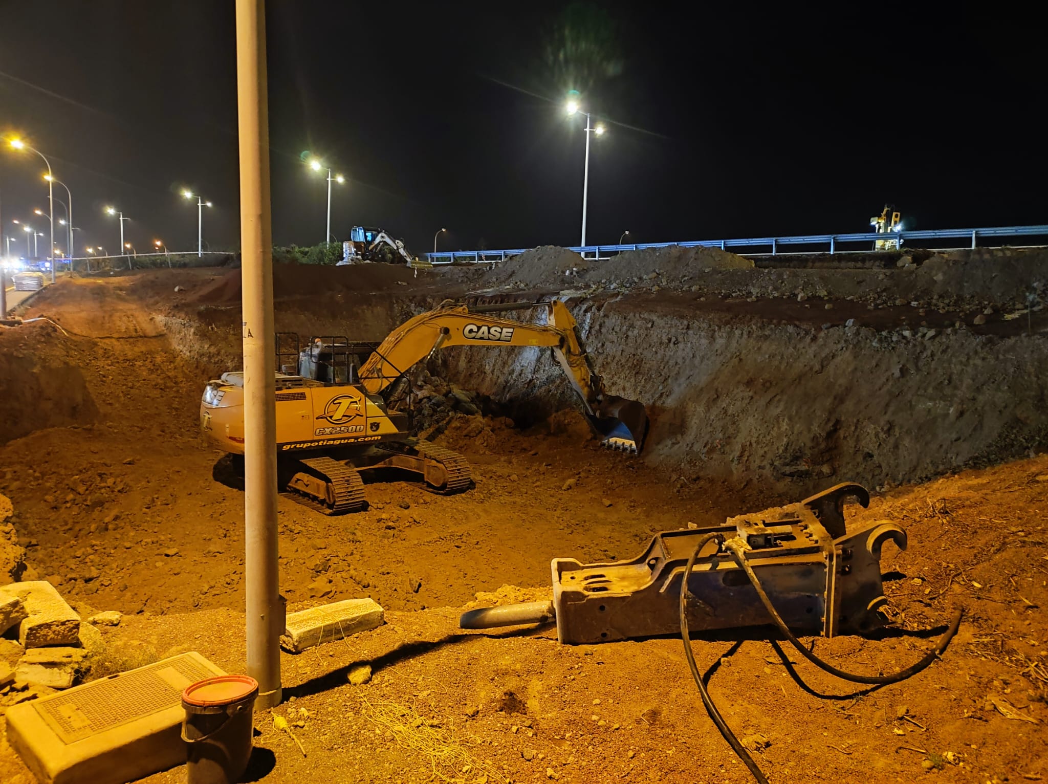 Los trabajos para crear esta nueva vía de escape cercana al CC Deiland llevan semanas sin parar, durante el día y la tarde-noche