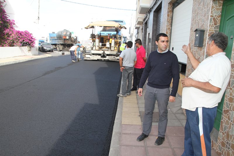 Así, el primer teniente de alcalde y concejal de Vías y Obras, José Montelongo, visitaba este lunes por mañana el avance de las labores de asfaltado que están teniendo lugar en el barrio de Maneje, concretamente en la calle Tinguanfaya, mostrando su satisfacción por el desarrollo de las mismas.