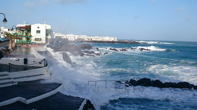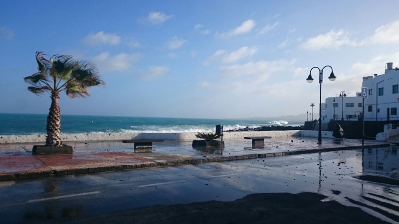 Las olas se están cebando con el norte de la isla y, en concreto, con el municipio de Haría. Si a primera hora de la mañana la fuerza del agua rompía uno de los pilares de hormigón del muelle de La Garita, al mediodía Punta Mujeres se convertía en el objetivo del océano.
