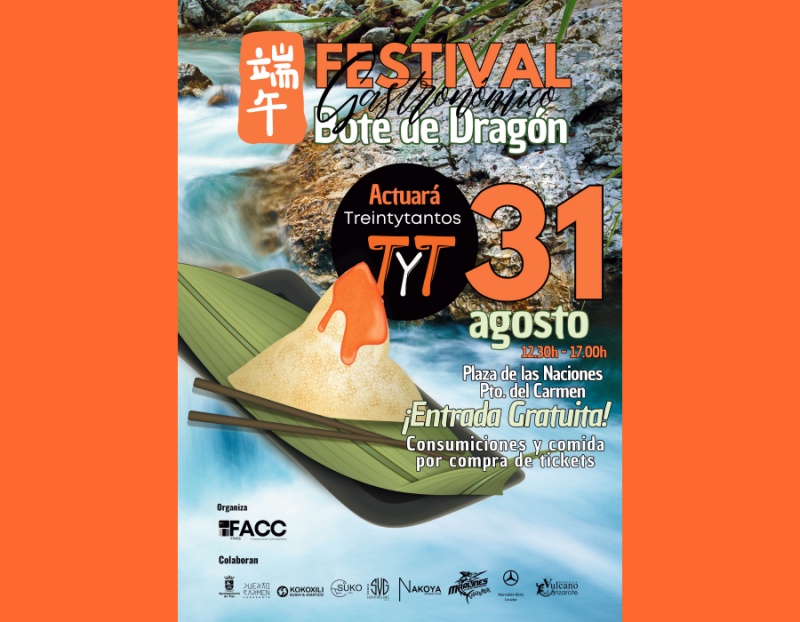 El festival contará con la actuación del grupo Treinytantos y las creaciones artísticas de Circo de Lanzarote, además de la exposición de dos embarcaciones típicas de la carrera de botes de dragón a cargo del club Los Marlines. Se podrá degustar vino de Bodega Vulcano y delicias de la cocina tradicional china como el zongzi (rellenos de arroz envueltos con bambú).