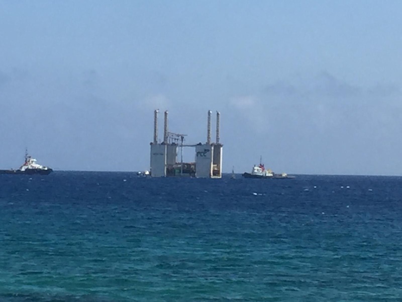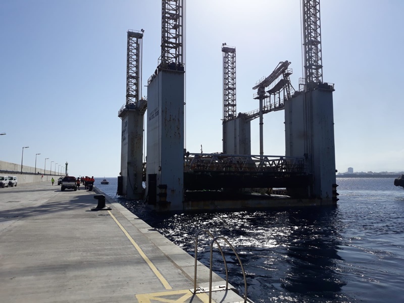 Llega la cajonera para la obra del muelle de Playa Blanca