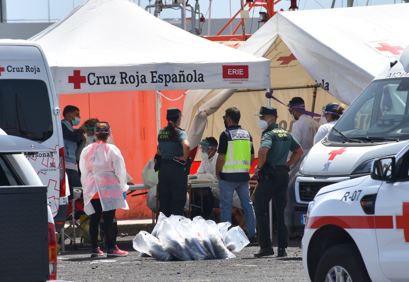 Posteriormente han salido trasladados a Puerto Naos por la Cruz Roja. Se les alojará en alguno de los espacios que tiene habilitado el Cabildo para este cometido, y allí deberán confinarse hasta que se confirme que no portan la Covid-19.