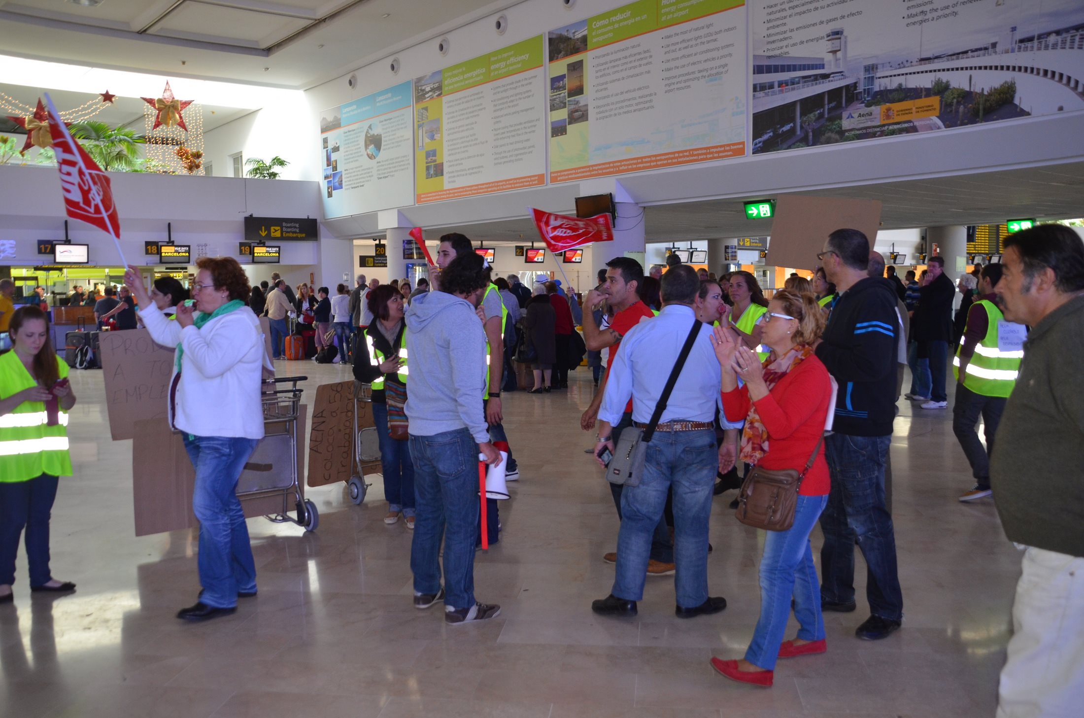 56 trabajadores de las cafeterías Medas del aeropuerto de Guacimeta han iniciado el miércoles 2 de enero una huelga ante el temor de ser despedidos, que prolongarán los días 5, 6 y 7 de enero, si no se soluciona el conflicto.