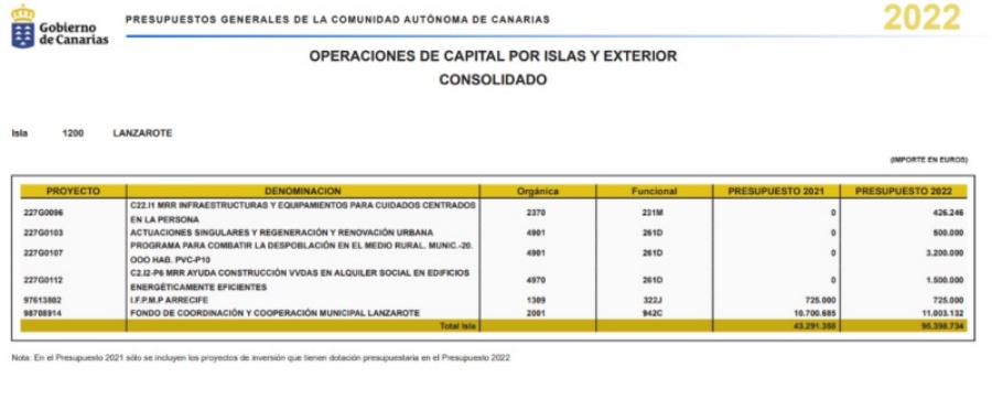 Vea todas y cada una de las partidas previstas en las cuentas del Ejecutivo Regional para Lanzarote el próximo año.