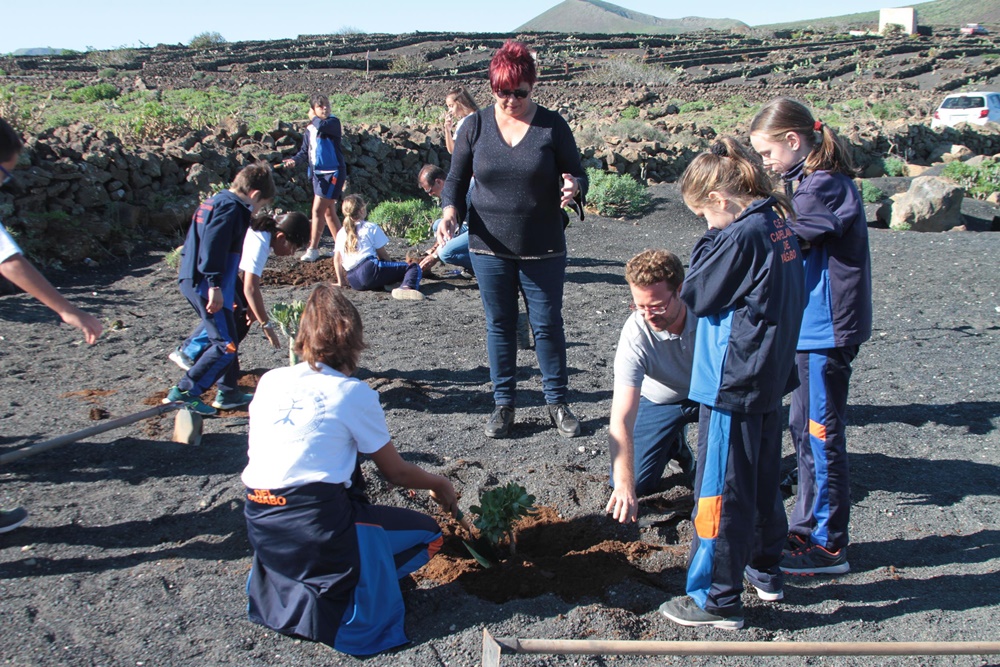 Gracias al convenio de colaboración rubricado en el pasado mes de mayo entre el Cabildo de Lanzarote, el Ayuntamiento de Haría y la Fundación Ecopilas, los dos centros educativos que más pilas recogieron en la última edición de la campaña 'Ponte Las Pilas', el 5º curso del Ceip Capellanía del Yágabo y los niños de 3 a 10 años del CEIP Muñique en representación de todos los centros y comunidad educativa, participaron esta mañana de una actividad de reforestación con especies autóctonas en una parcela agrícola degradada de 900 metros cuadrados que se encuentra ubicada en el municipio de Haría. Concretamente en la conocida como Finca Los Lajares, propiedad del consistorio norteño.