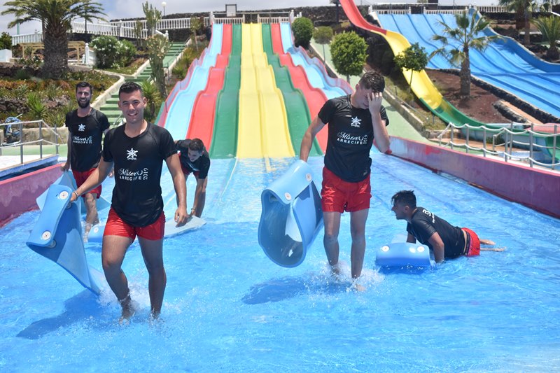 Dentro de las actividades más veraniegas los aspirantes a Míster Arrecife disfrutaron de un sábado completo en el parque acuático de Costa Teguise