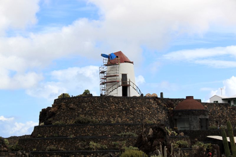 Los Centros de Arte, Cultura y Turismo del Cabildo de Lanzarote están acometiendo la restauración del Molino del Jardín de Cactus. En concreto, desde el pasado 22 de octubre, se están reparando la cubierta y los elementos de madera de la estructura que aparecían dañados, tanto en las aspas, como en el sistema de engranaje. Los trabajos, que cuentan con los permisos pertinentes del Servicio de Patrimonio del Cabildo de Lanzarote, tendrán una duración aproximada de dos meses, estando prevista su finalización a mediados del presente mes de diciembre.